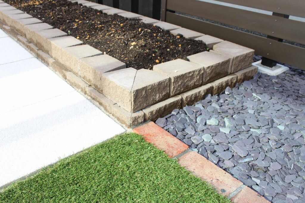 最大40cmの高低差を解消できる土留めになり、敷地周りの高低差の解消以外にも、写真のように高さを出したいスペースを囲うことで、