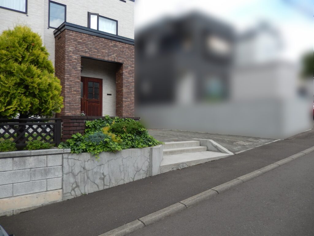 札幌市北区 木目調とアイアン素材のデザイン門柱&アプローチ