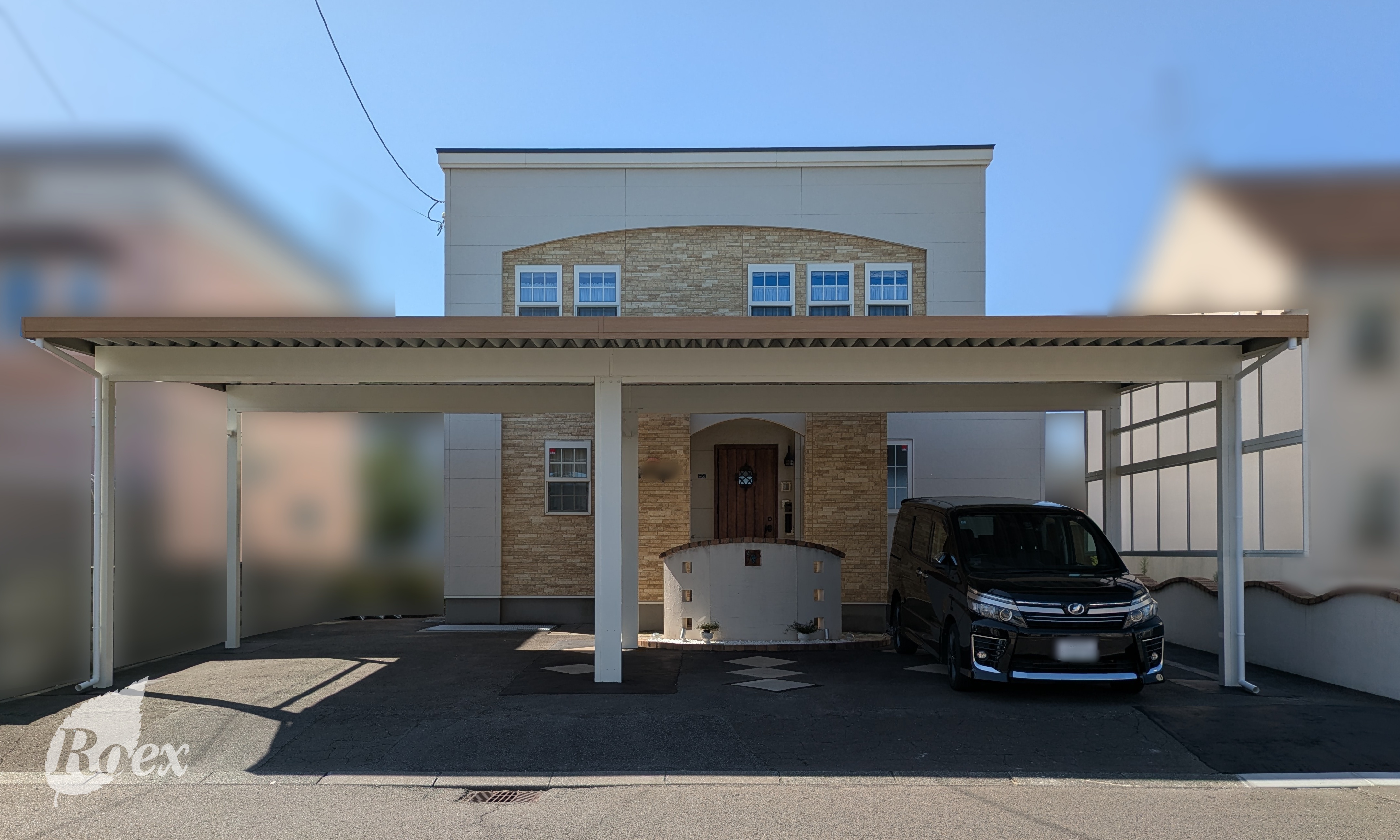 以前フロントの外構を弊社にて施工させていただいたリピーター様。今回は、洋風の住宅に調和するホワイトのカーポートを、既存の外構デザインとのバランスを考慮しながら設置いたしました。