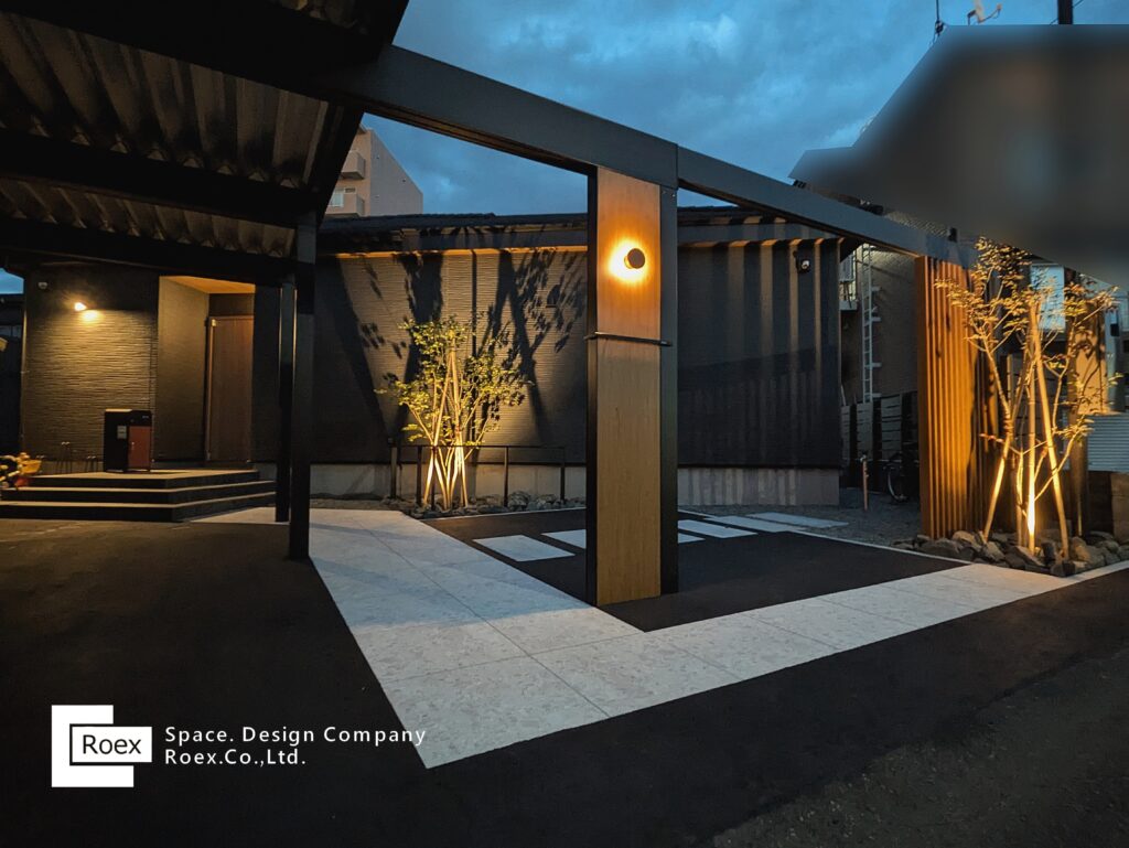 光の配置・明るさ・色温度を丁寧に設計することで、住まいの第一印象を格上げするナイトシーンを創り出しています。