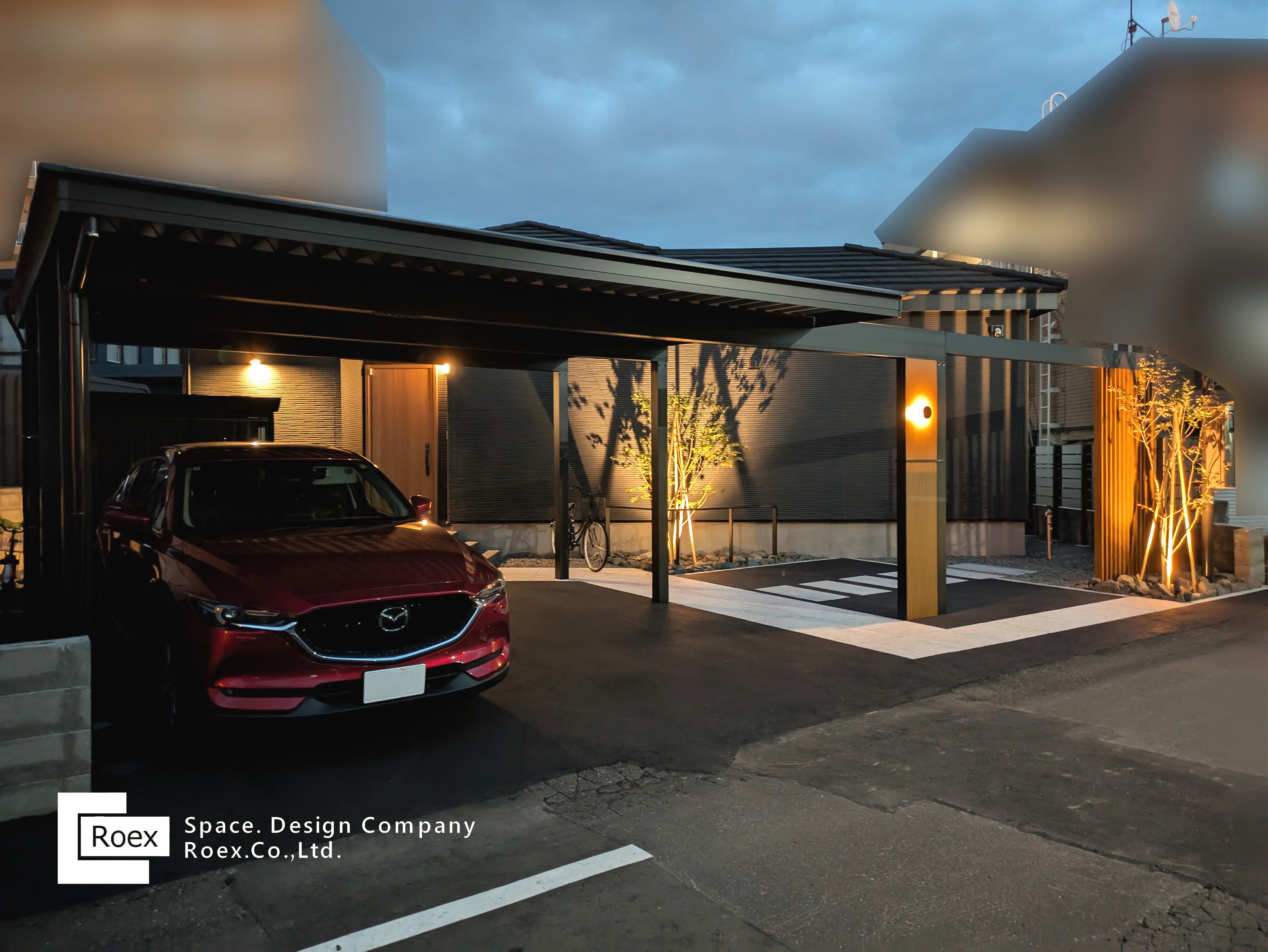 ■カーポート:YKKapジーポートPRO(カームブラック) ■照明:タカショーデジテック