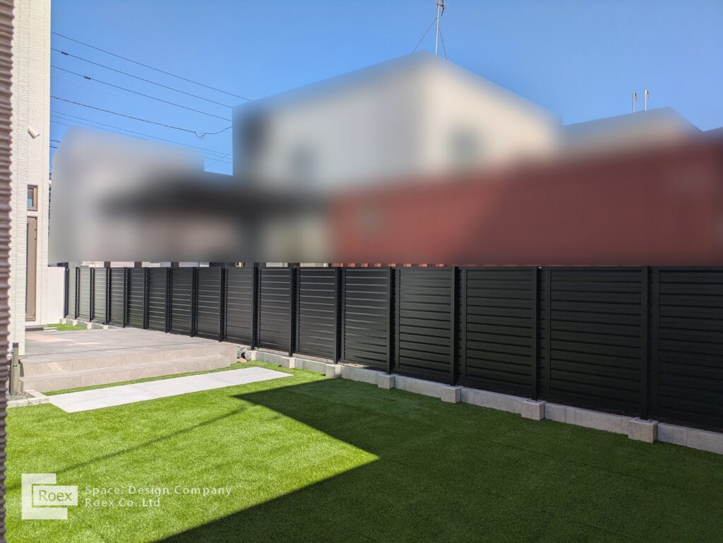札幌市 メンテナンスフリーで楽しむ、人工芝とタイルテラスの庭