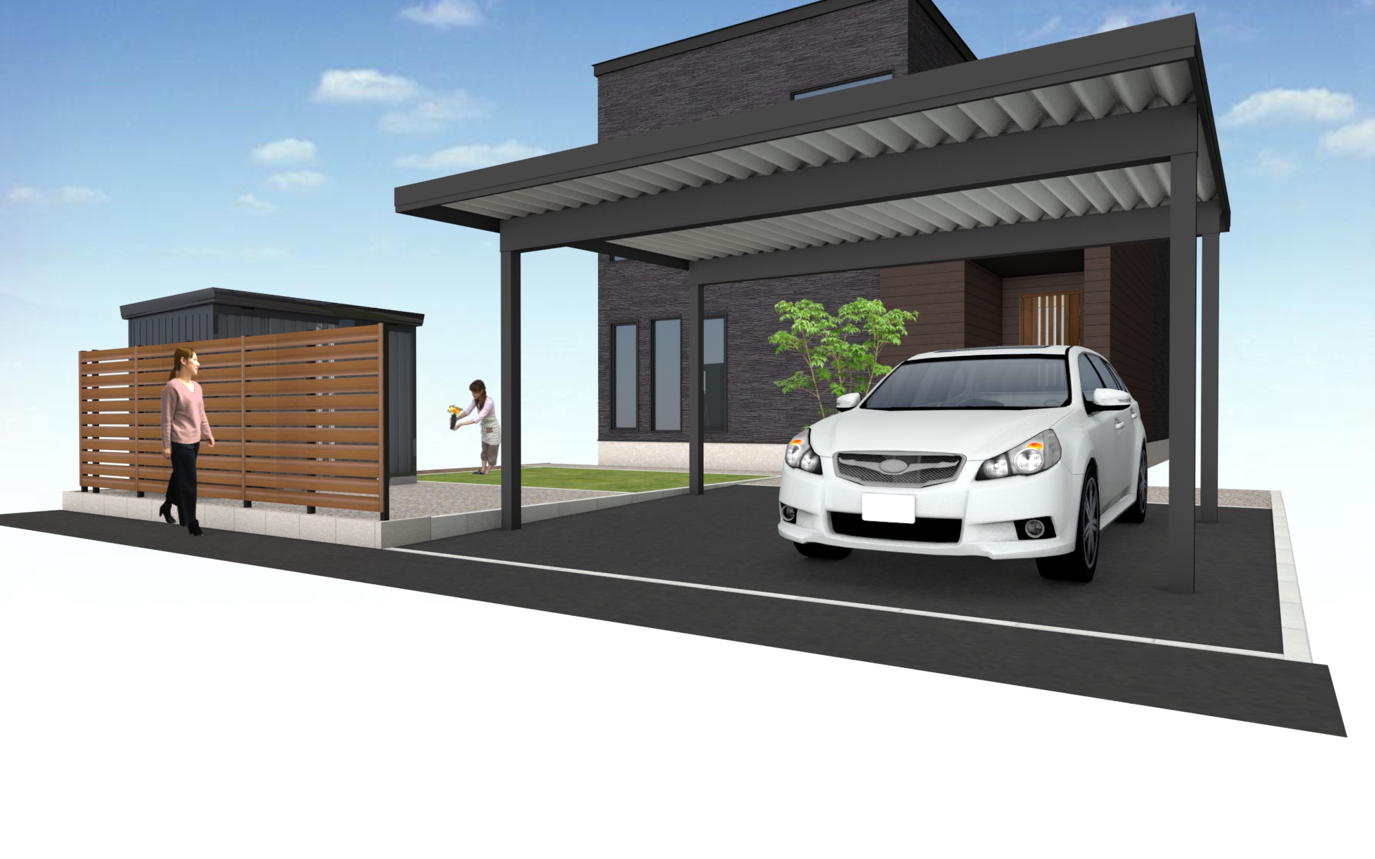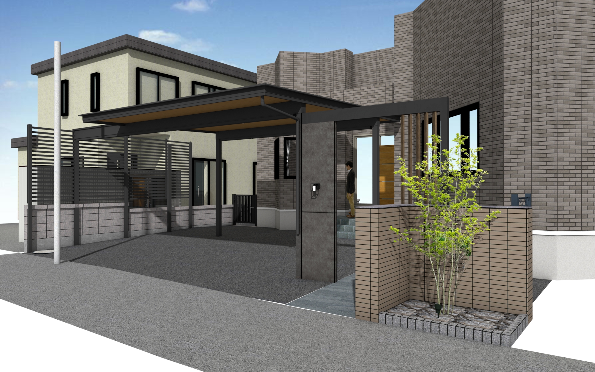 【工事内容】・駐車スペース(カーポート)・フリースペース・デザイン門柱・その他