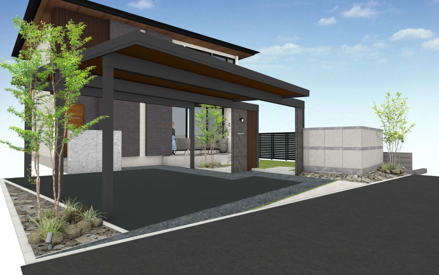 【工事内容】カーポート(特注デザインカーポート)・デザインボード門柱・植栽工事・その他