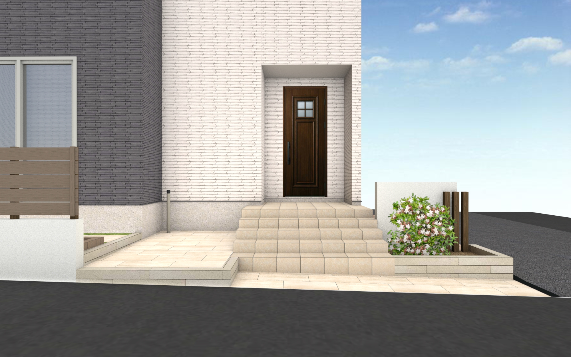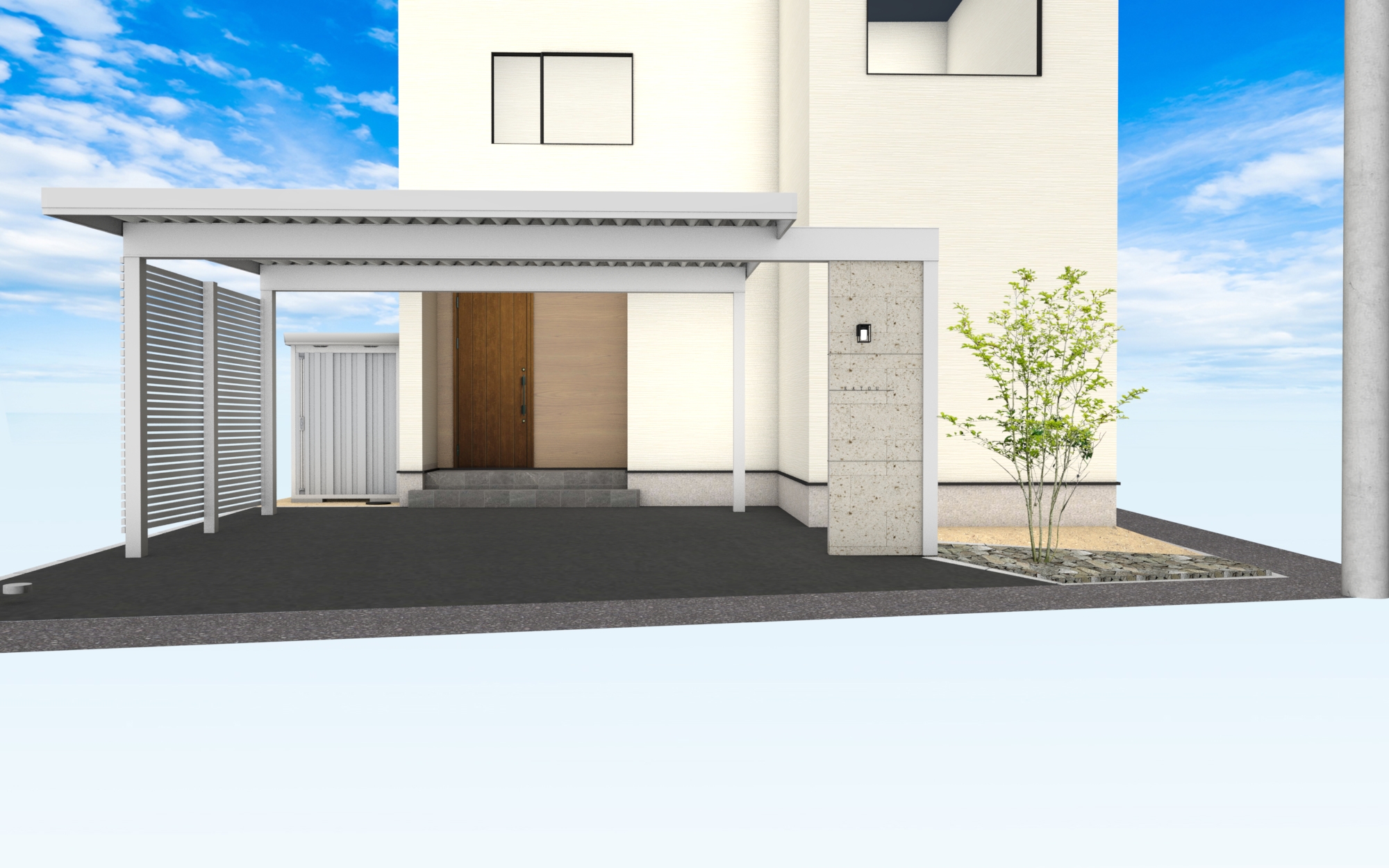【工事内容】駐車スペース・カーポート・門柱・物置・アプローチ