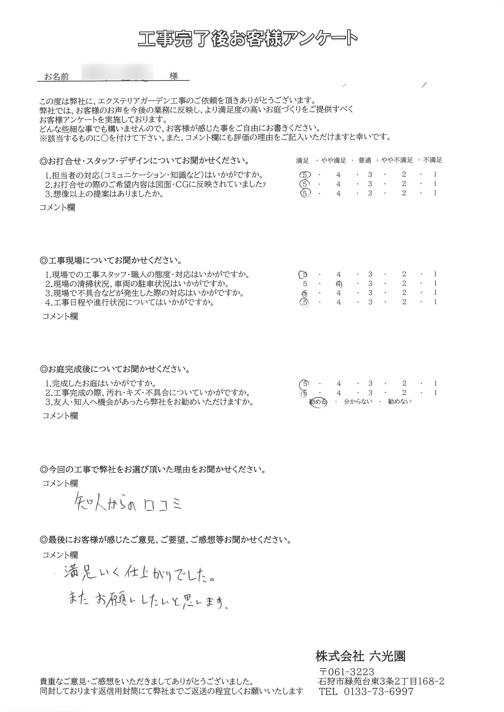 この度は、六光園に工事をご依頼いただき誠にありがとうございました。
