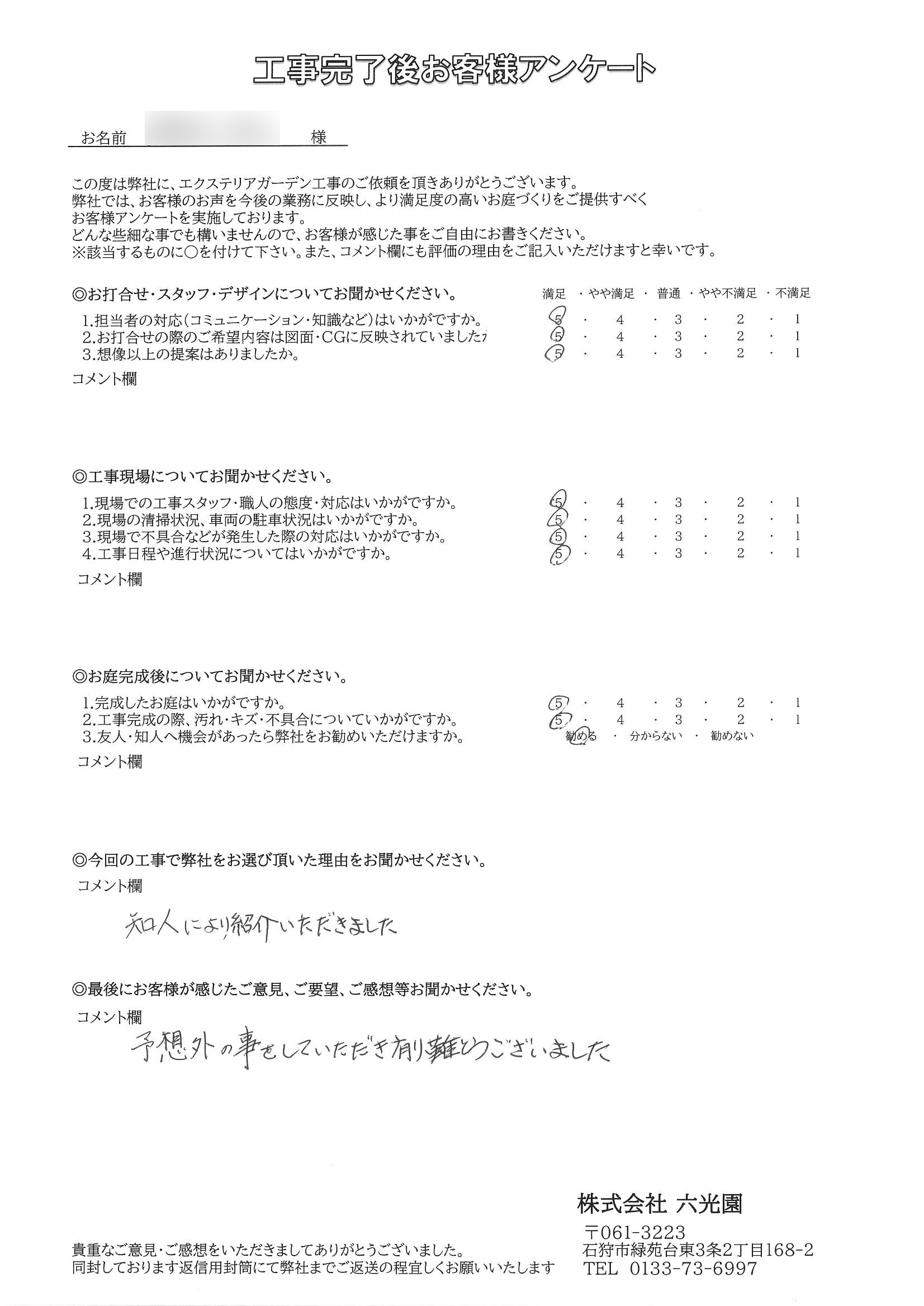 この度は、六光園に工事をご依頼いただき誠にありがとうございました。