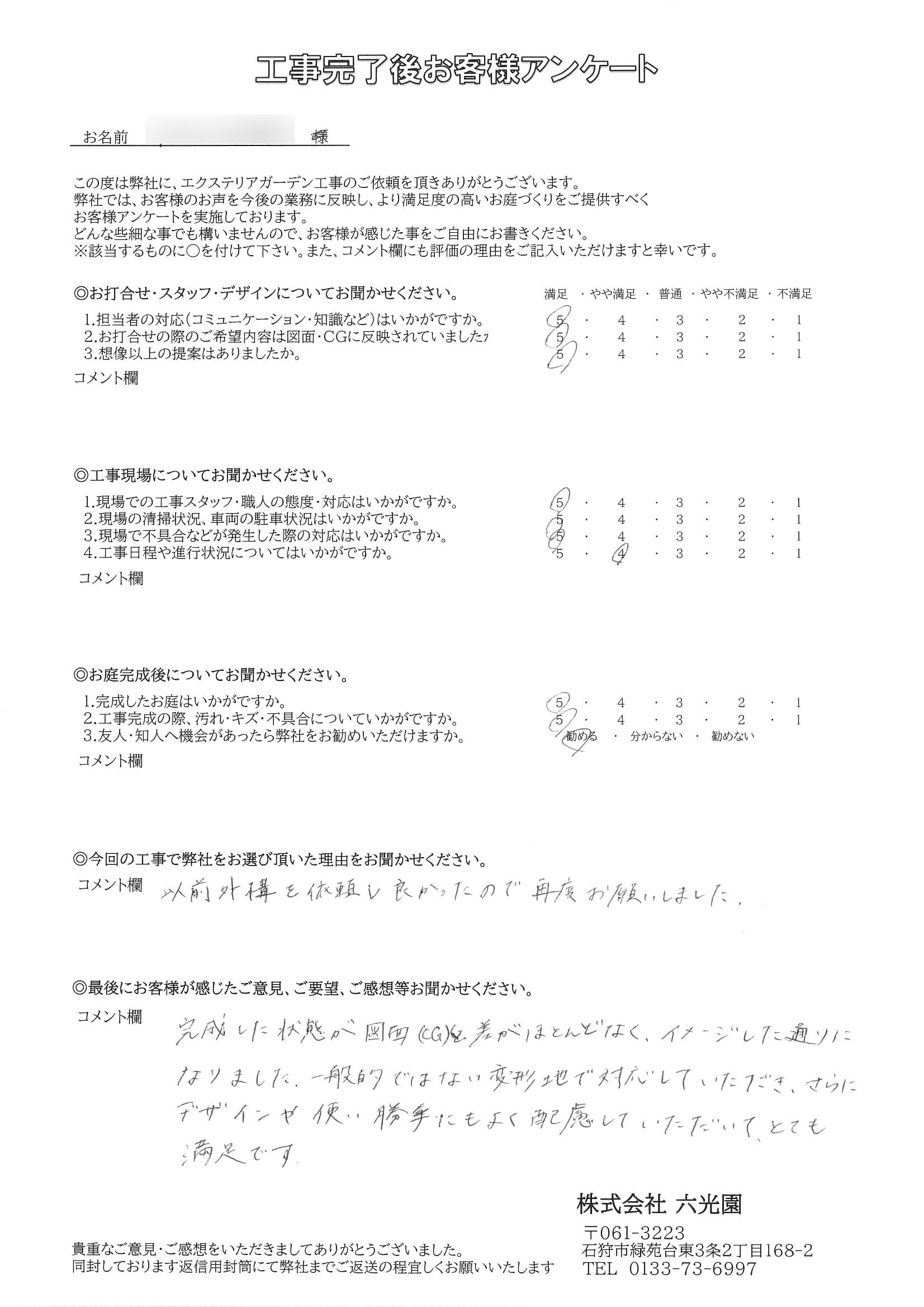 この度は、再度六光園に工事をご依頼いただき誠にありがとうございました。